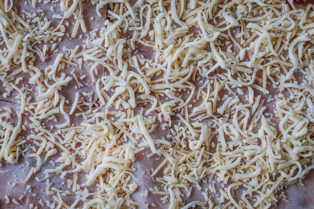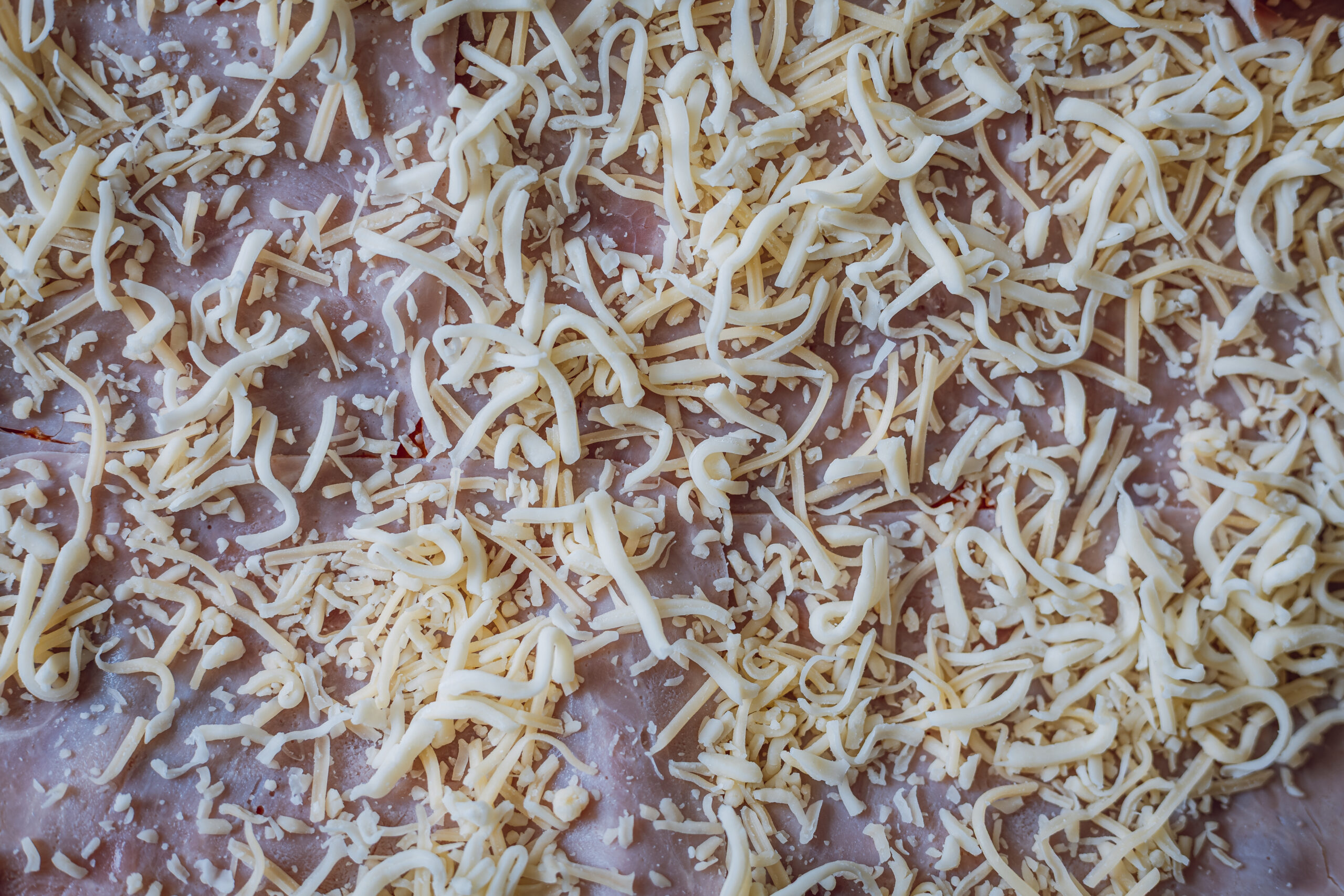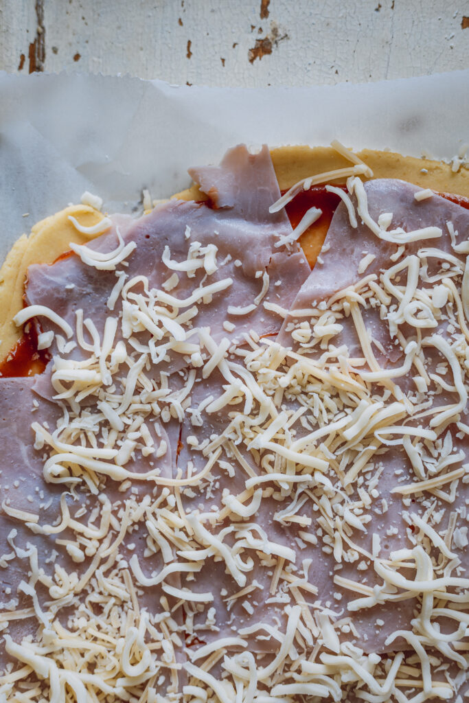 8. Na těsto dáme kečup, koření dle chuti, šunku, sýr a zamotáme.